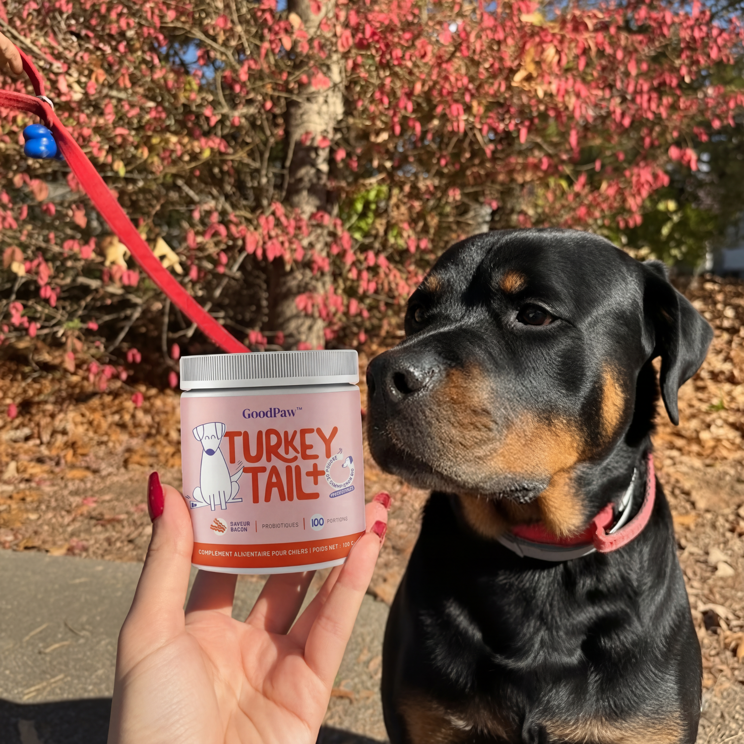 GoodPaw™ est un complément naturel conçu pour soutenir le système immunitaire, favoriser une digestion saine et aider votre chien à rester actif et en forme en vieillissant.